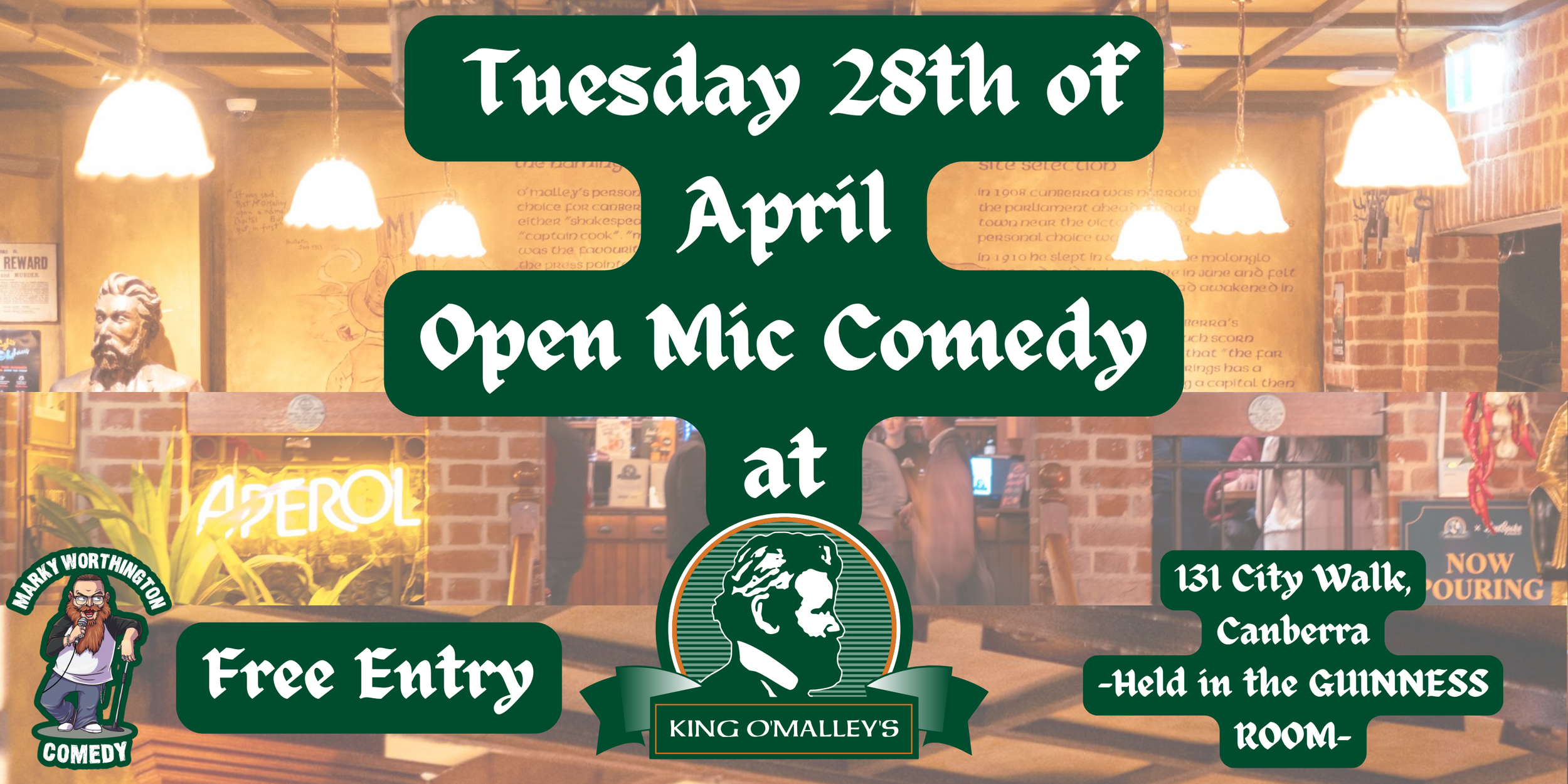 Come along to the next Free Entry Open Mic Comedy night held at King O'Malley's held in the gallery.